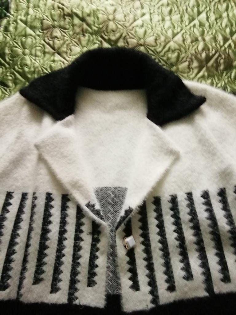 It seems like a beautiful cardigan, but there is an awkward nuance: the top is loose, but the bottom is tight.