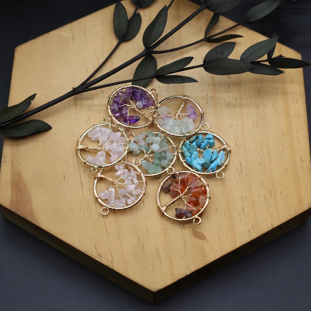 2Pcs Winding Connector Natural Stone Fluorite/Amethyst Round Gravel Connector For Jewelry Making DIY Necklace Bracelet Accessory