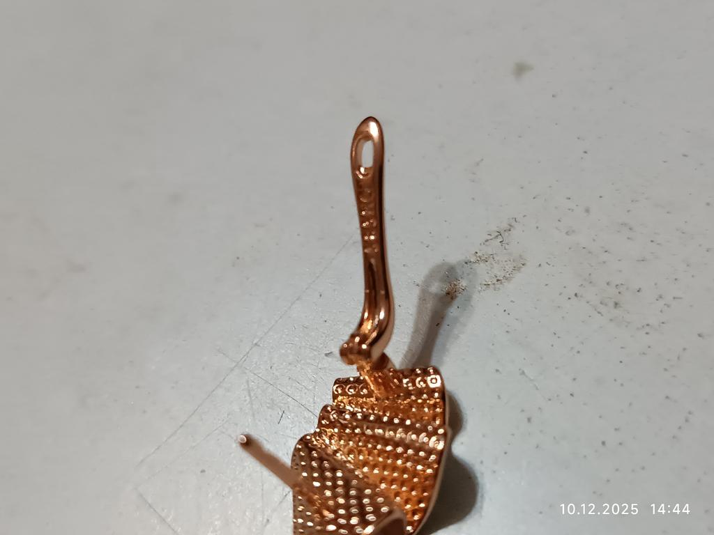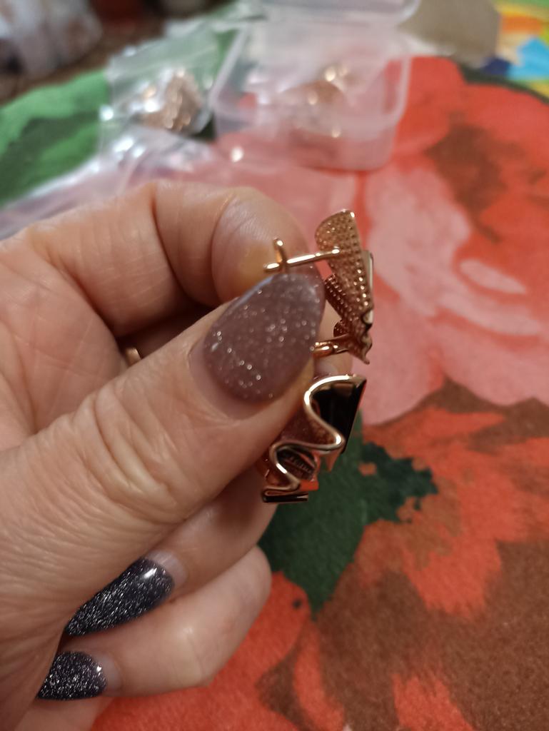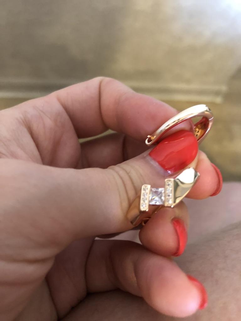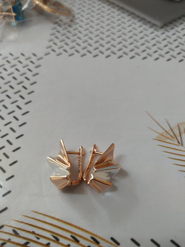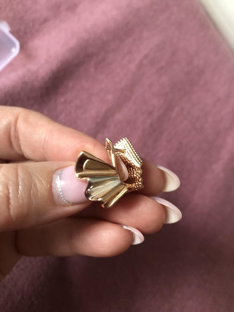 Luxurious earrings. In the photo, they look more voluminous, in fact 2 cm, the English clasp is lowered by 4 mm, which closes the puncture, the margin for the hem is 12 mm, there is a sample of 585. I made sure that the Kinel store sells high-quality, well-packaged goods. I recommend the seller and the product.