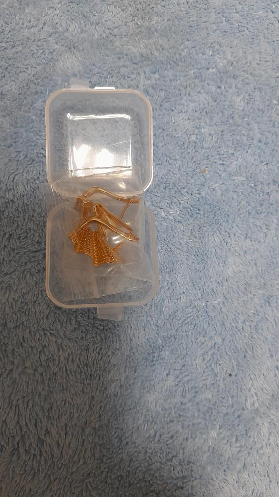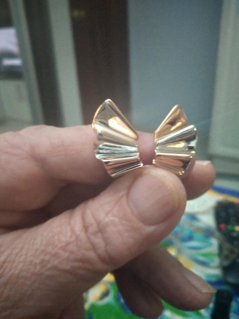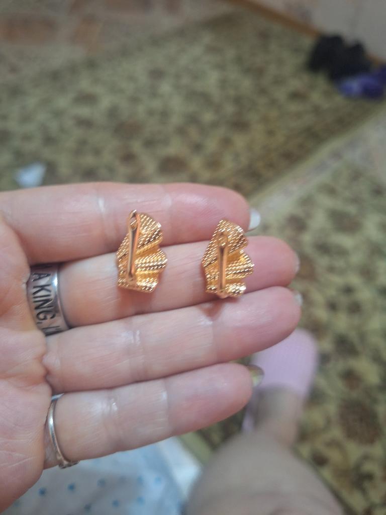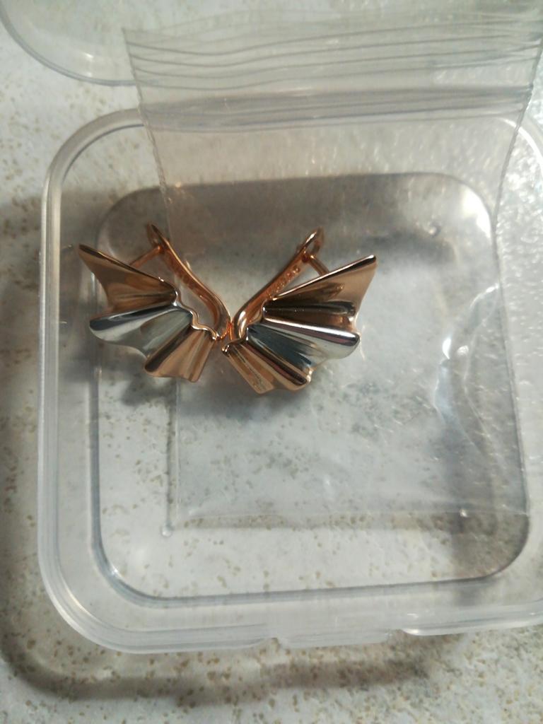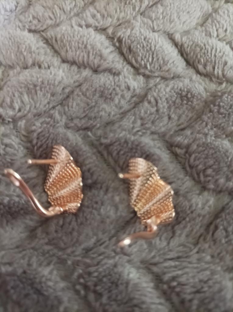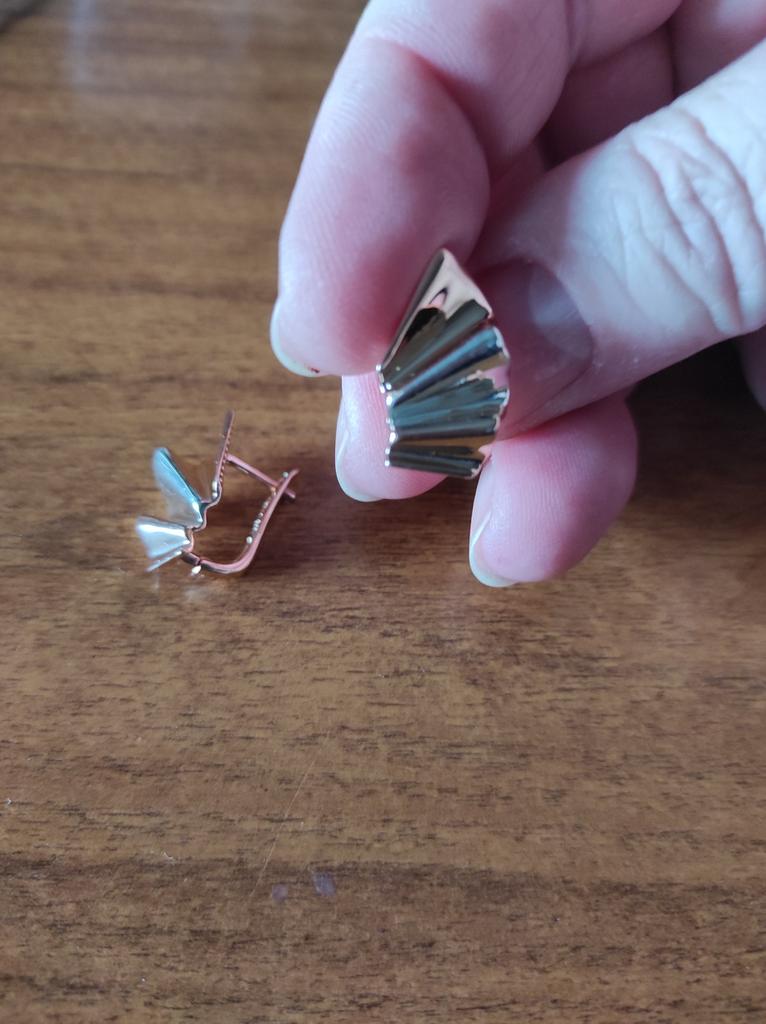 Luxurious earrings. In the photo, they look more voluminous, in fact 2 cm, the English clasp is lowered by 4 mm, which closes the puncture, the margin for the hem is 12 mm, there is a sample of 585. I made sure that the Kinel store sells high-quality, well-packaged goods. I recommend the seller and the product.