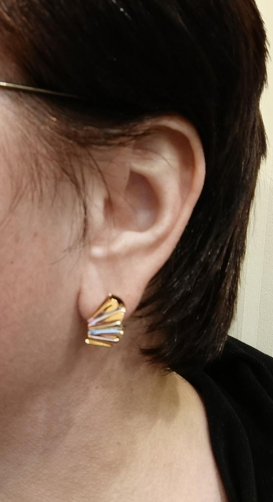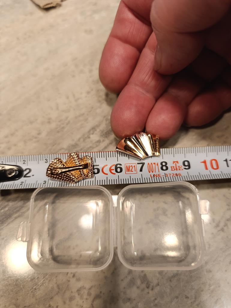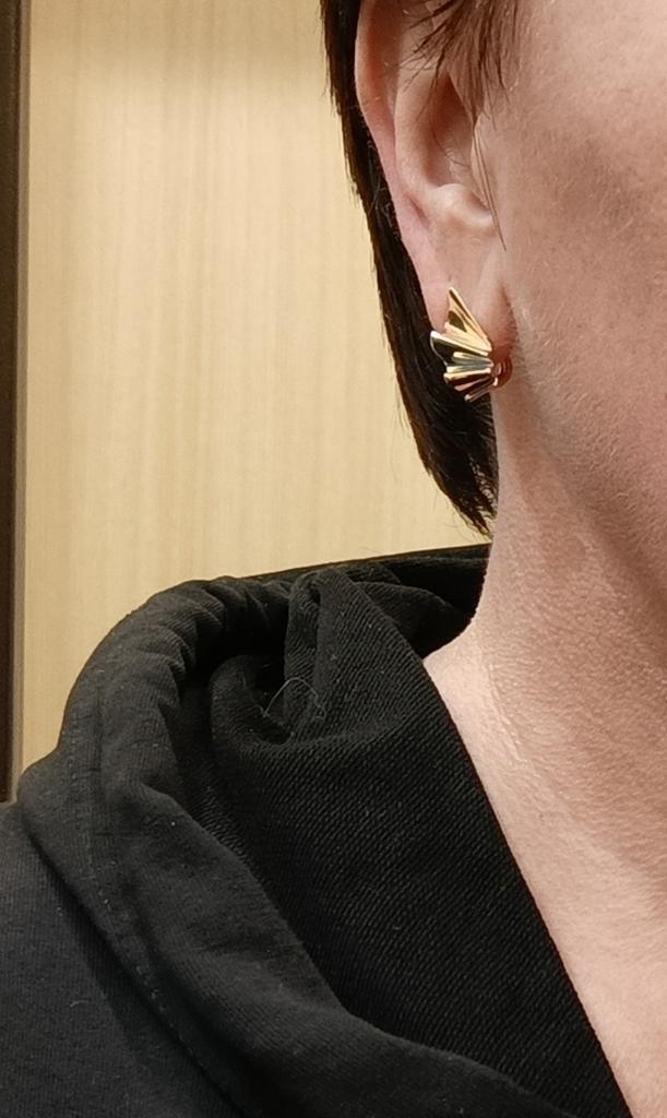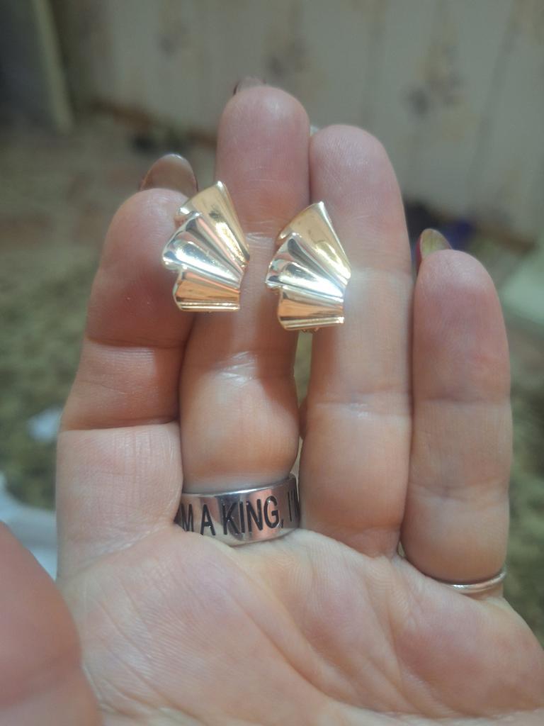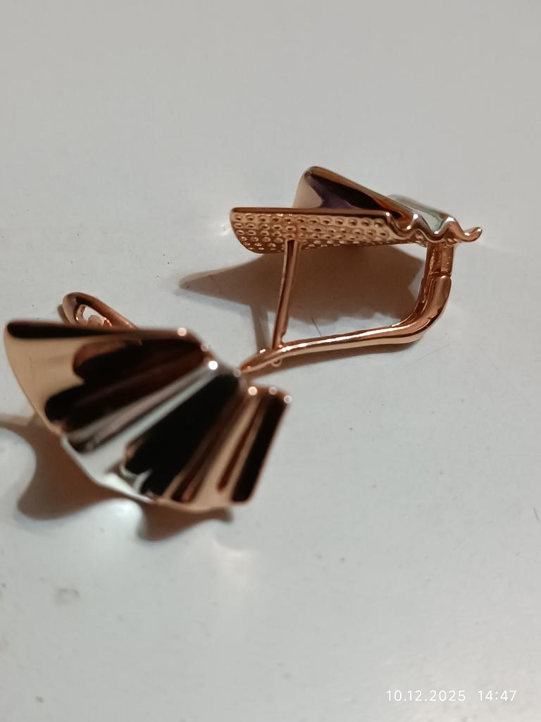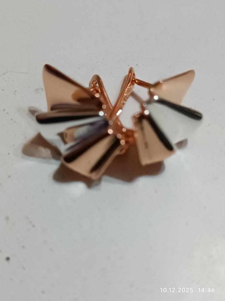Luxurious earrings. In the photo, they look more voluminous, in fact 2 cm, the English clasp is lowered by 4 mm, which closes the puncture, the margin for the hem is 12 mm, there is a sample of 585. I made sure that the Kinel store sells high-quality, well-packaged goods. I recommend the seller and the product.