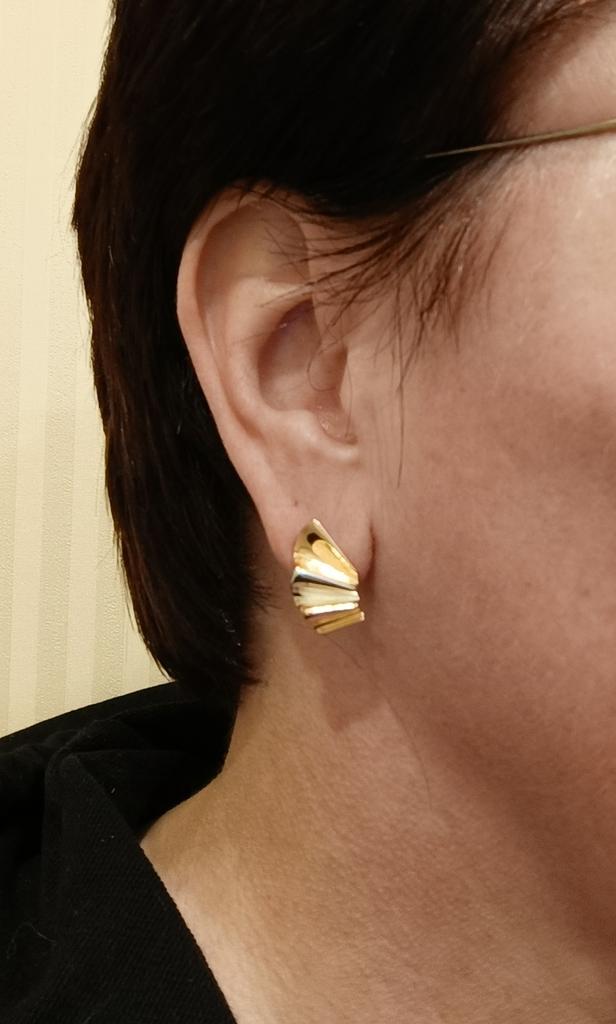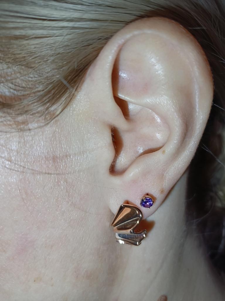 They look awesome on the ears, solid, interesting, unusual. I think they will attract attention. High-quality locks, medium size, not small. They do not look like costume jewelry, they do not pull more than a jewelry item. Thank you!