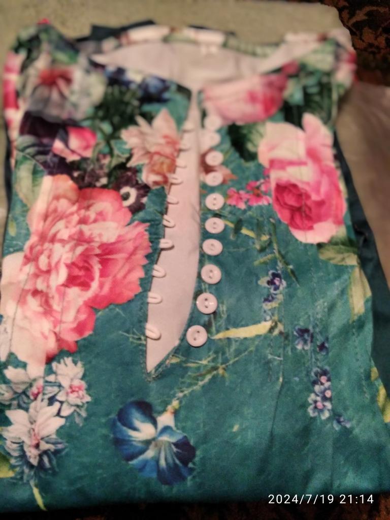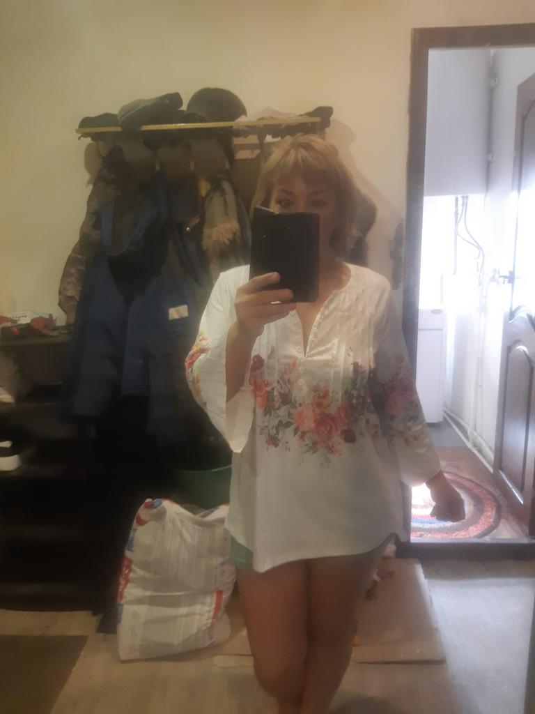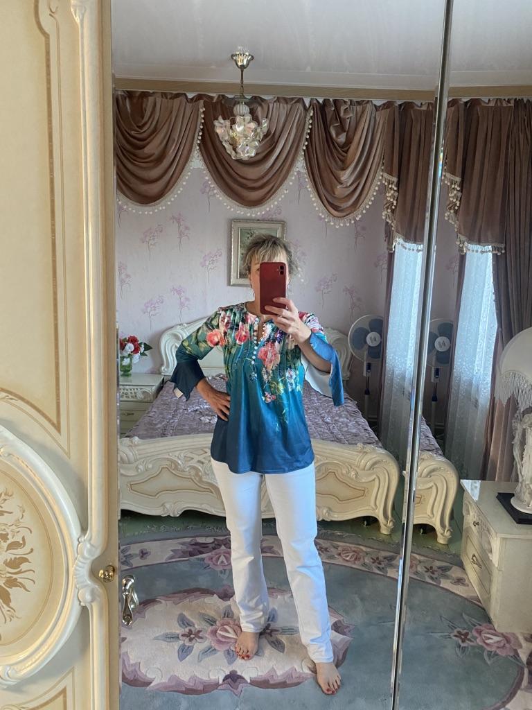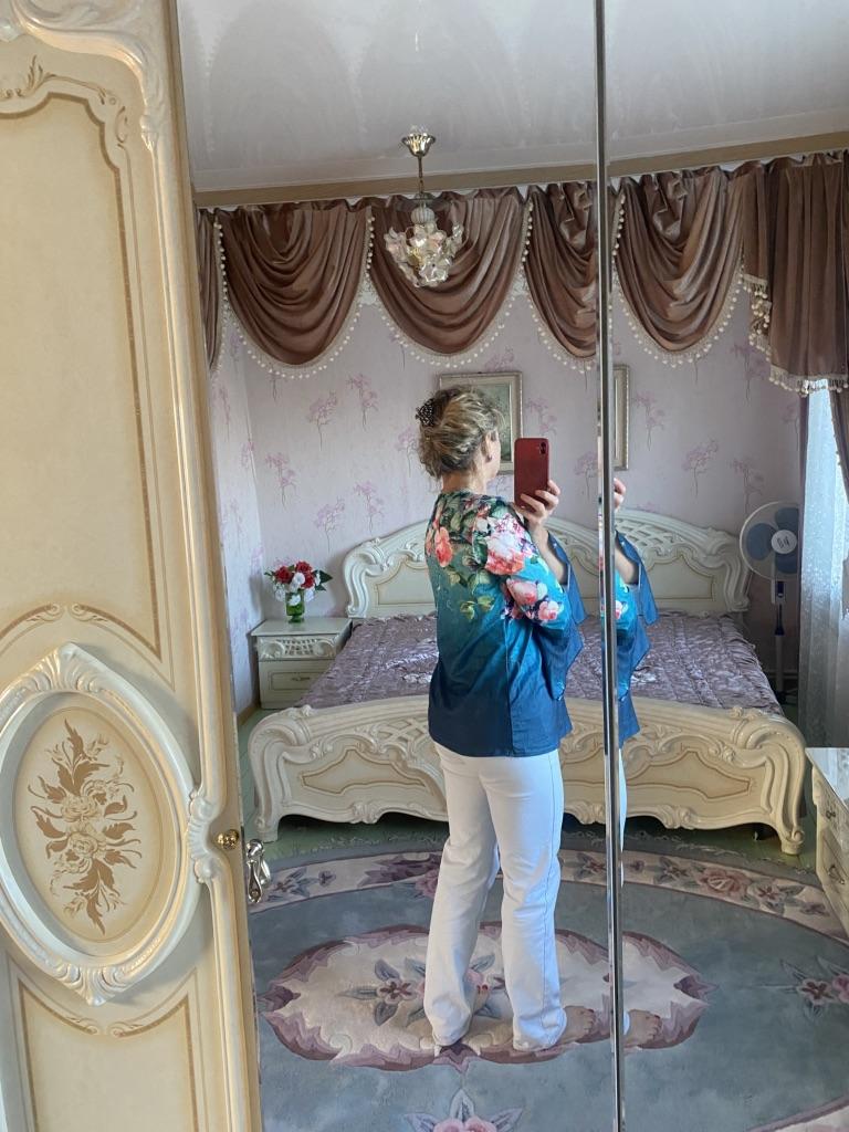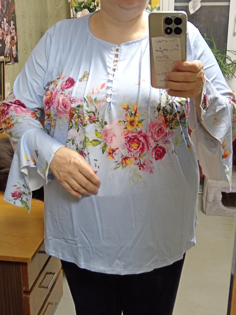 I ordered 2 pieces, size L. It’s a bit big for my 48, even in the shoulders. The blouses are pleasant to the touch, breathable, summery, like T-shirts.