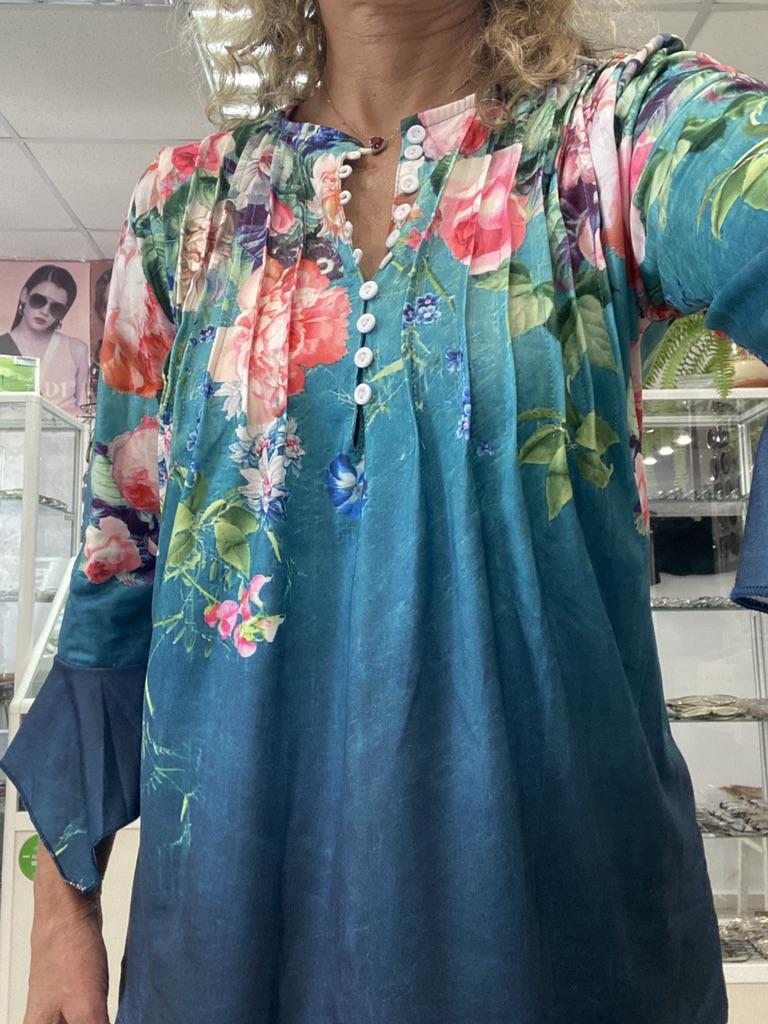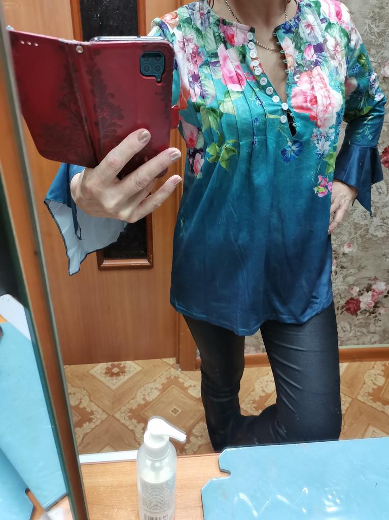 Very high quality blouse, I have size 46, I took 3x and it was even a little loose for me. The fabric is pleasant, the seams are neat
