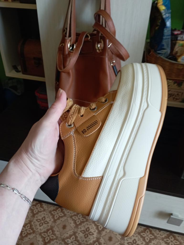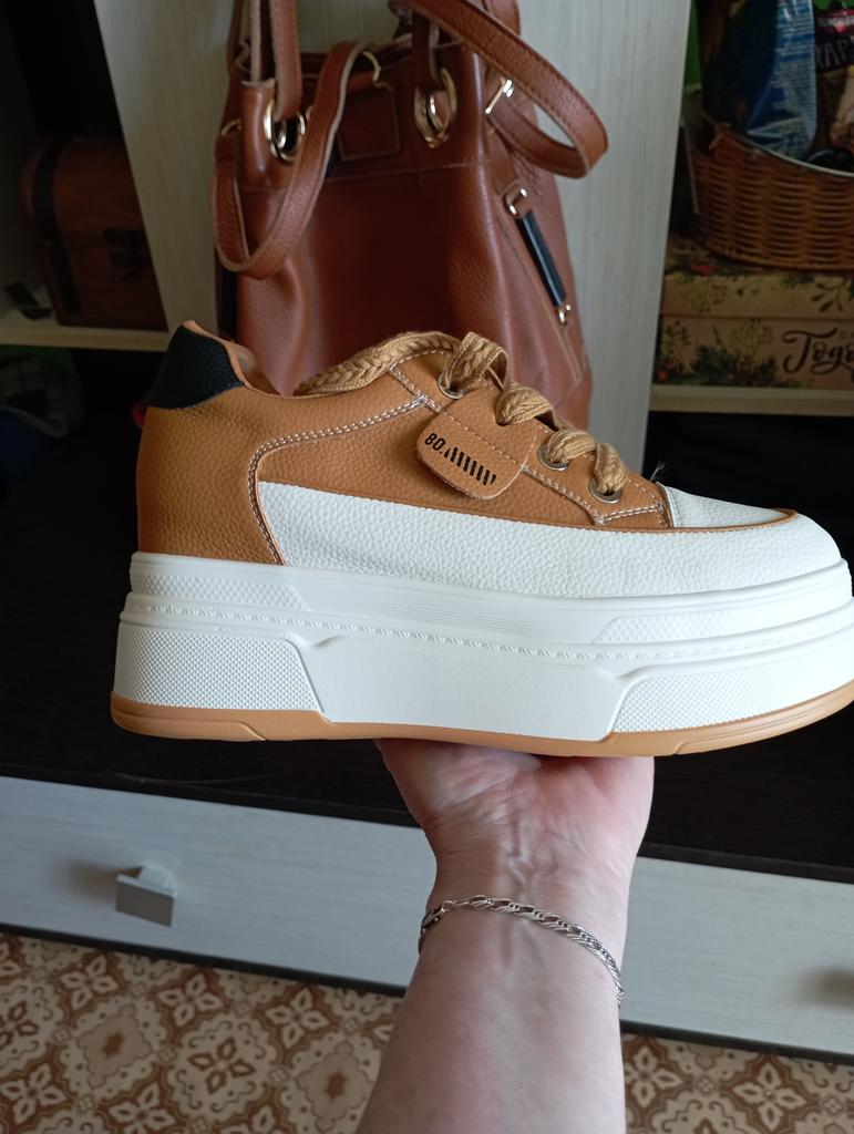 The sneakers are good, neat, but run small. I bought 40 for my 39. They are a little tight, I hope that over time they will stretch at least a little. Delivered quickly, the movement of the parcel is tracked.