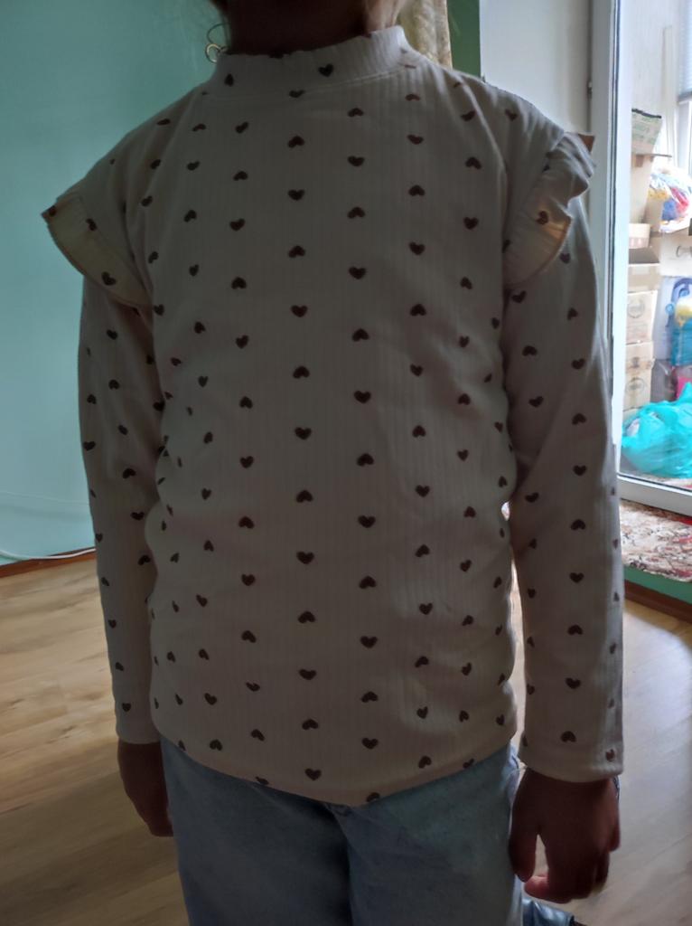 My daughter is 2 years old, it fits just right, a very pretty blouse, soft, warm, everything is sewn neatly