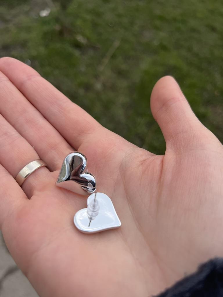 Minimalist Silver Color Smooth LOVE Heart Stud Earrings for Women