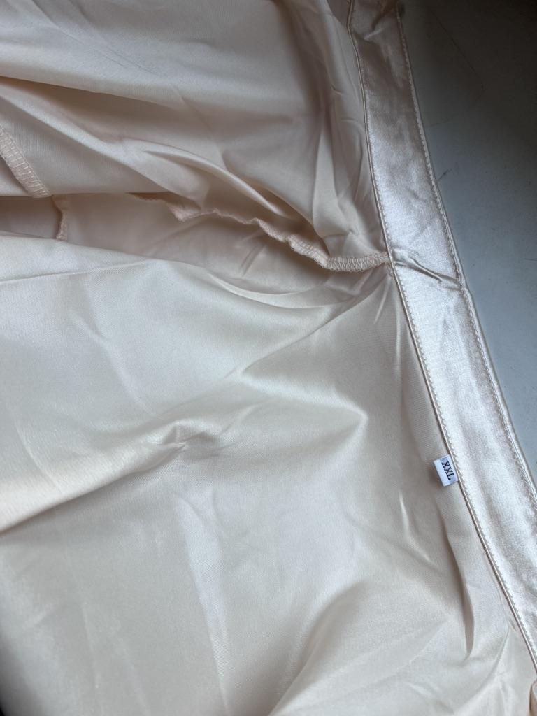 Fits size 54. The fabric is light, visually like satin.
