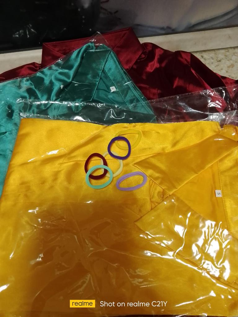The size fits well. The quality of the fabric is not very good, although for such money it is normal quality. I recommend the seller. I received 2 hair elastics as a gift. Thank you