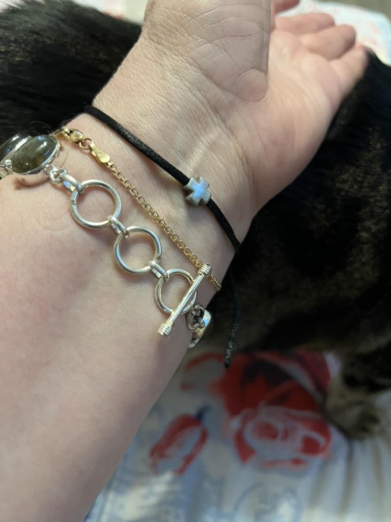 Good bracelet, fit not on a full hand. Beautiful stones, the bracelet goes with most of the wardrobe. But this is not silver. There is a smell of metal, silver does not smell.