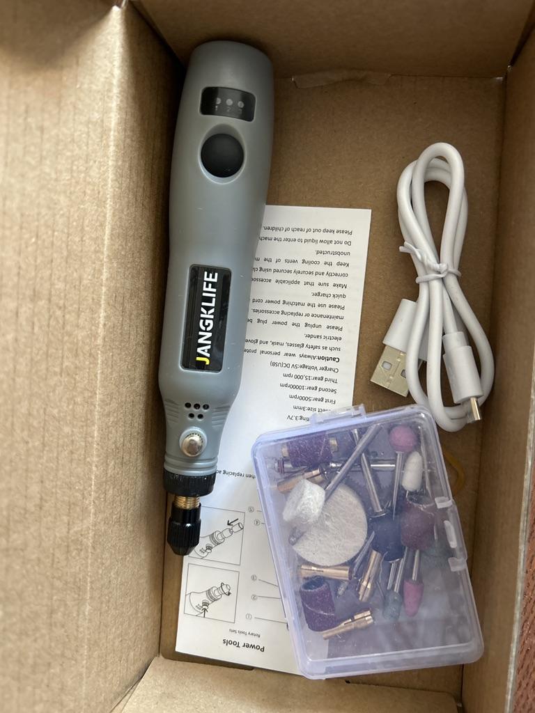 Cordless Rotary Tool, Defective USB Cable. Overall I am happy with the parcel. Thank you..