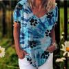 T Shirt For Women Print Cat Girls T-shirt Fashion Summer Short Sleeve V-neck Casual Loose Top Oversized Female Streetwear Shirt