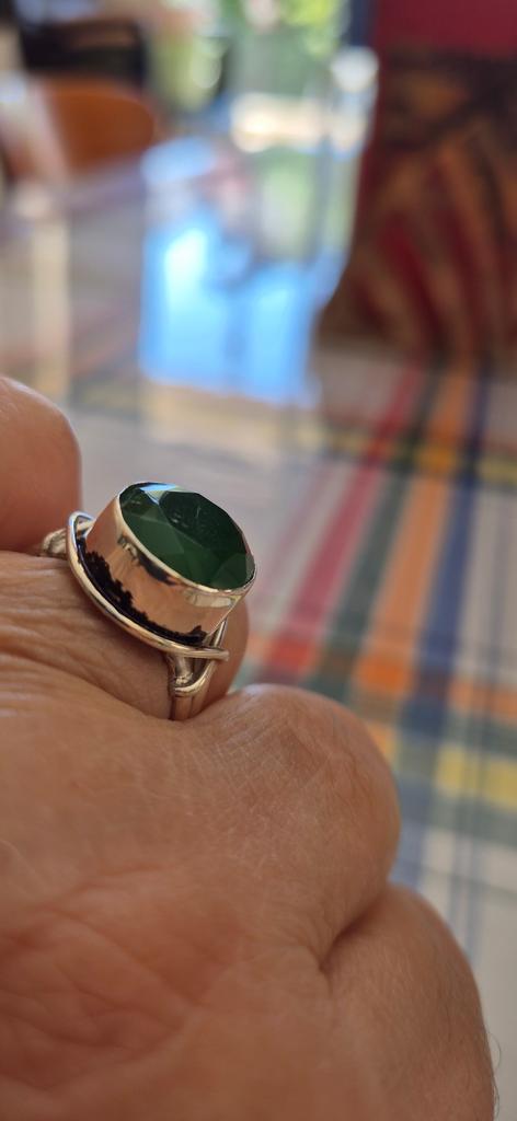 Faceted Green Onyx Gemstone 925 Solid Sterling Silver Handmade Lovely Ring Jewelry