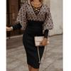 Autumn Winter Long Sleeve V-neck Slim Waist Wrap Hip Dress for Women Elegant Plaid Pencil Midi Dresses