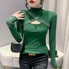 Spring Autumn New Fashion Hot Diamond Mesh T-shirt Women's Long Sleeve Hollow Top Solid Color Half High Neck Bottoming Shirt