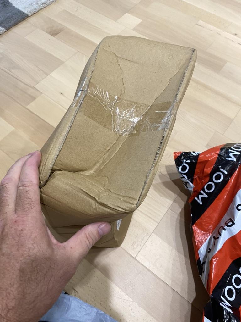 Everything is great, rating 4 for the crumpled box