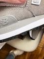 On one sneaker, the suede is assembled and glued to the sole.
