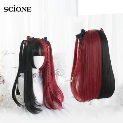 Y2K Gradient Black Red Wig Harajuku Long Straight Bangs Lolita Headwear Chic Girls Women Halloween Cosplay Gothic Witch Party