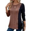 Spring and Autumn Women's Knit Top Colorblocking Button Split Casual Long Sleeve Top Blouse