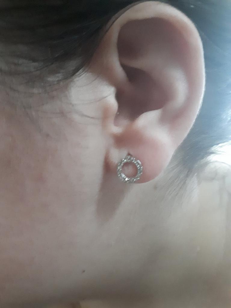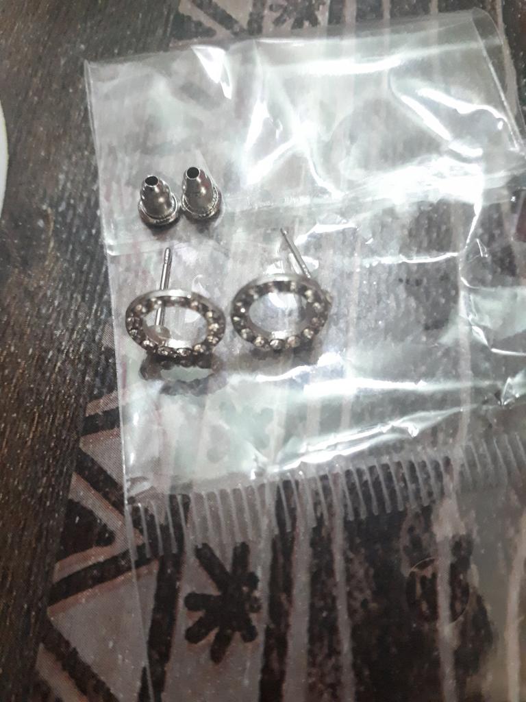 Very cute earrings. Glitter beautifully. I wear them very often and they don't get dark. Seems to be real silver. I like it a lot!