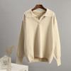 Autumn and Winter Alpaca Polo Collar Women's Fashionable Simple Solid Color Casual Knitted Sweater