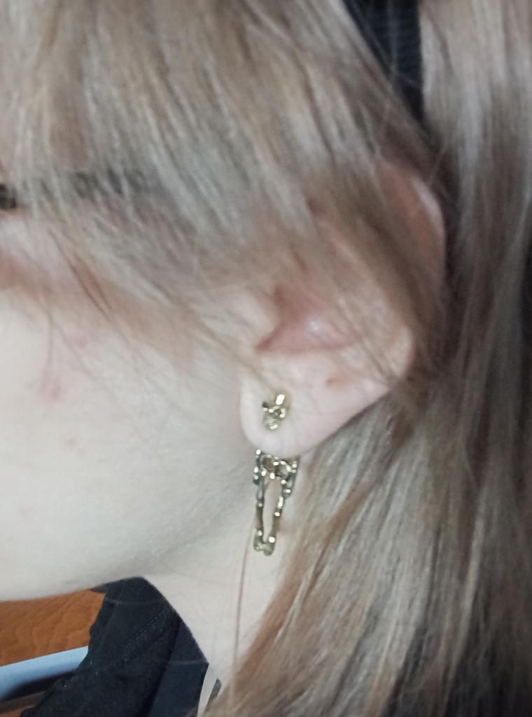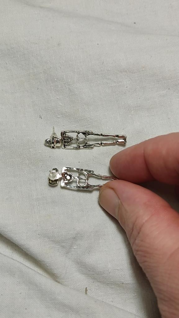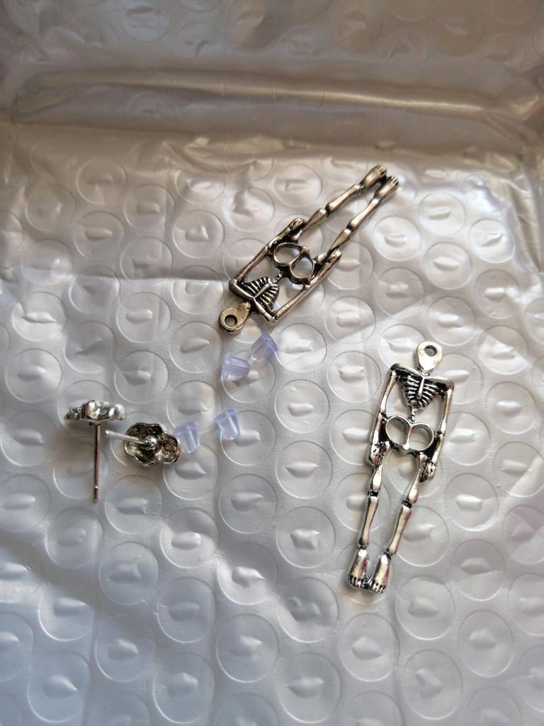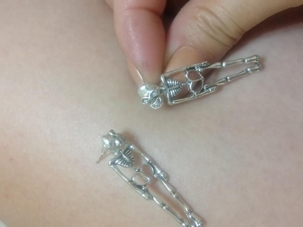 Very beautiful earrings, do not darken at all, can be worn both as shown in the picture and separately. I sometimes wear just the skull, looks great