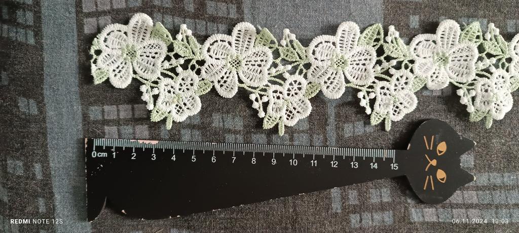 1 Yard White Green Craft Flower Lace Fabric 5CM Wide