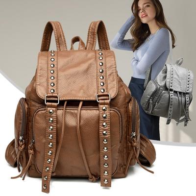 Fashion Rivet Backpack Women'S Soft Leather Washed Leather Large Capacity School Bag Travel Backpack