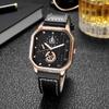 Men Quartz Square Dial Watches PU Leather Strap Sports Watch