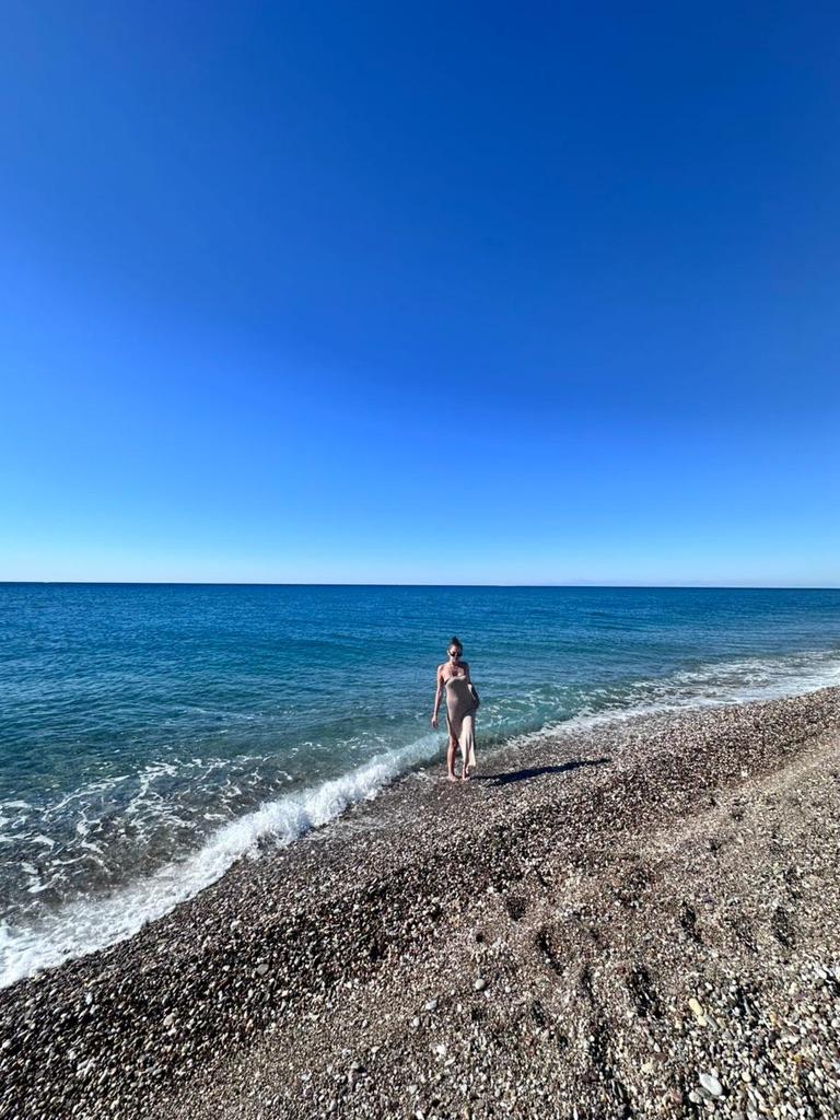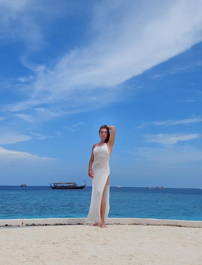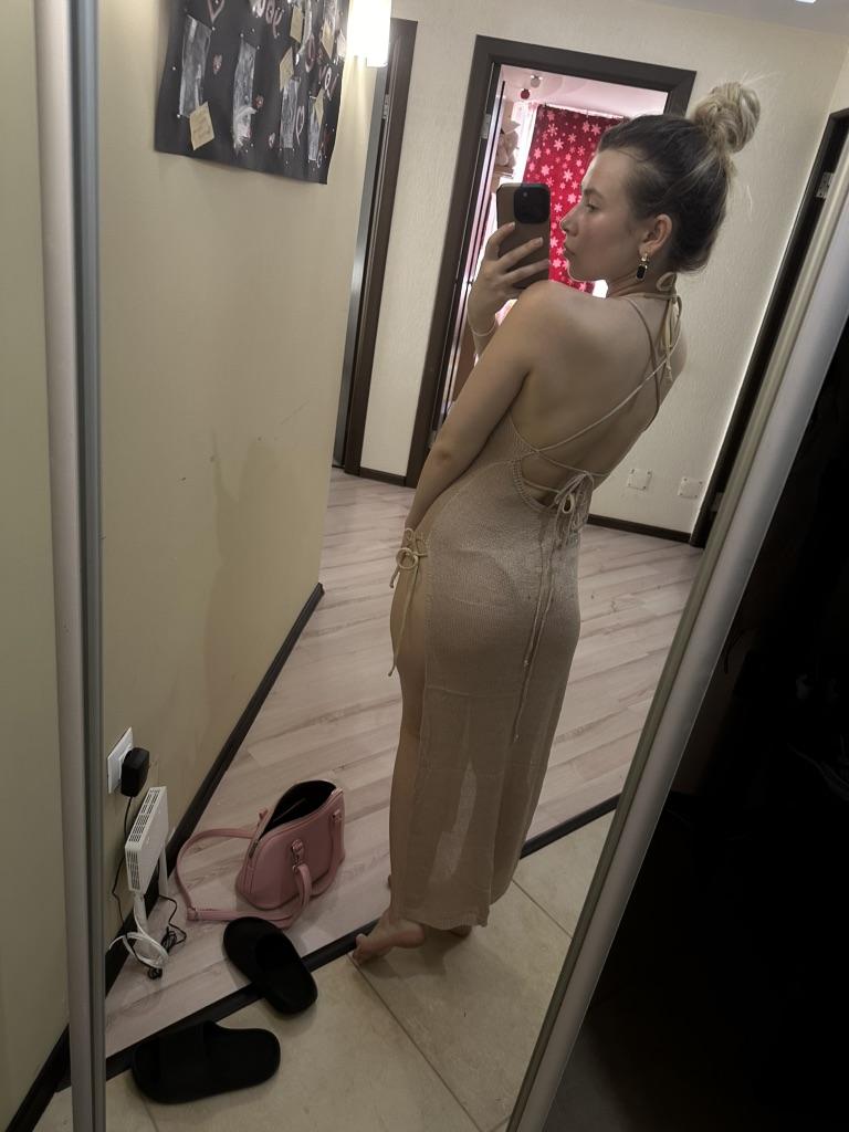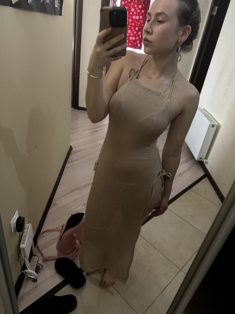 Beach dress ✨ Unexpectedly pleasant and delicate fabric, I liked it) For my height of 175, the dress is almost to the floor, I think that it will drag on the ground for girls up to 165. You can't see it in the photo, but there are shiny threads in the fabric, I didn't like it at first, but when I put on the dress, it turned out to be beautiful, I even imagined how the dress would sparkle beautifully on the beach under the sun✨ I recommend