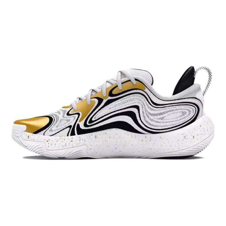Under Armour Spawn 6 White Metallic Gold Unisex Sneakers Black 3027263-100