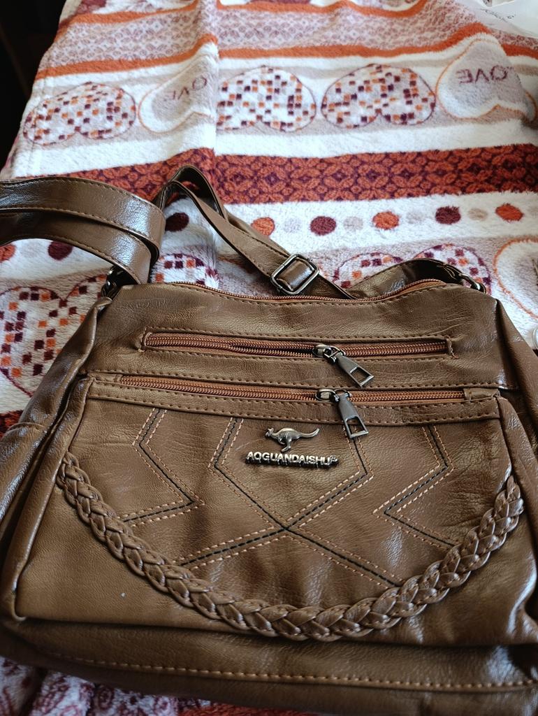 The handbag is sewn neatly, the material is a bit rough, but it's okay for the price