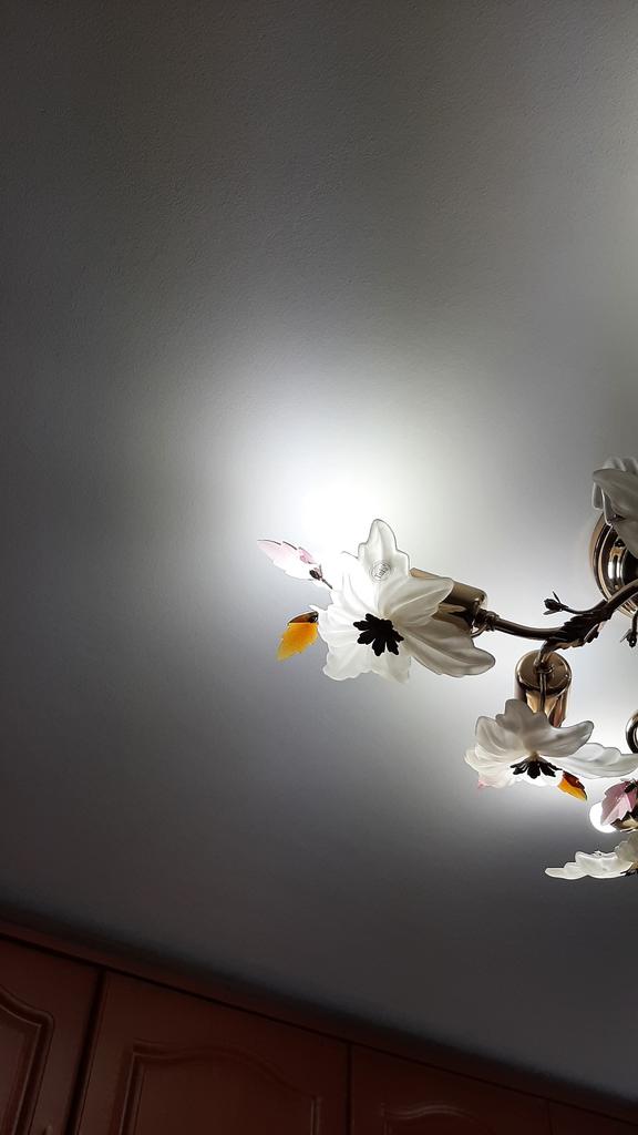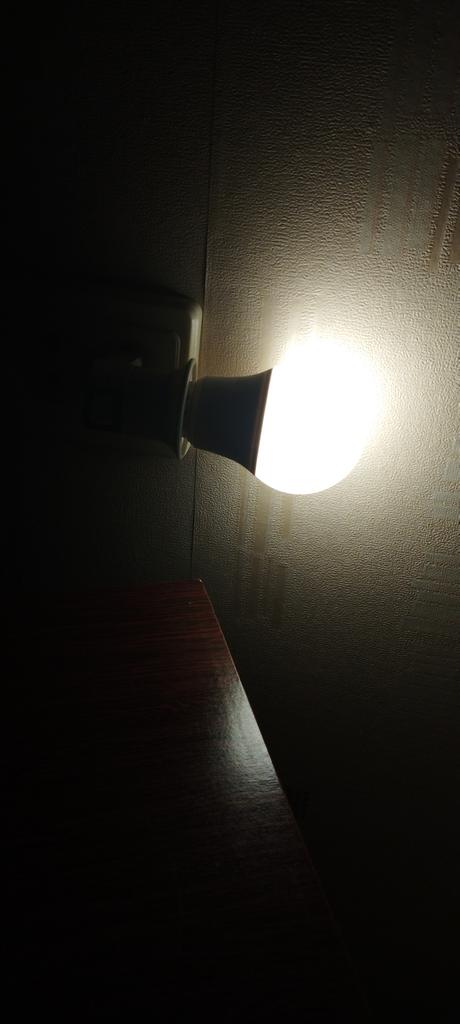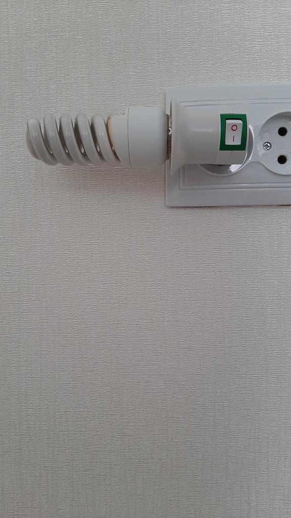 Small, close to the wall, the light bulb is lying on the wall, on the wallpaper.