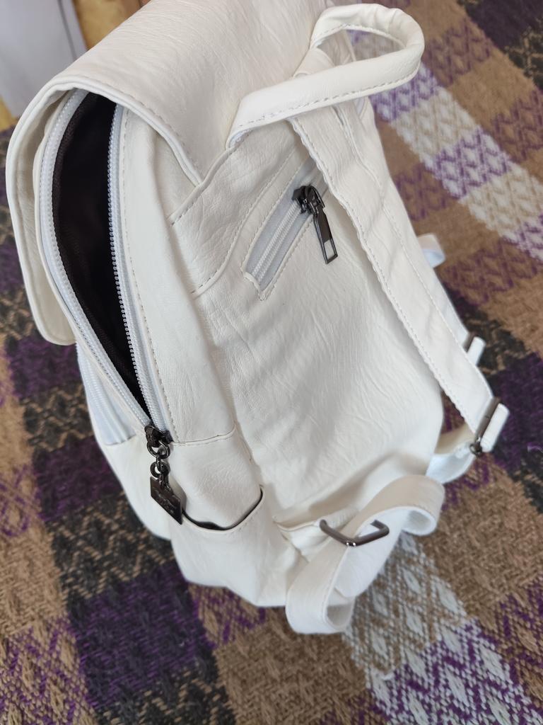 Beautiful, roomy backpack. One drawback - it's inconvenient that the zipper has only one "slider". It would be more convenient to close the zipper with two hands from bottom to top. Although, it's a matter of habit. The material is soft, high-quality. Everything is sewn evenly and strongly.