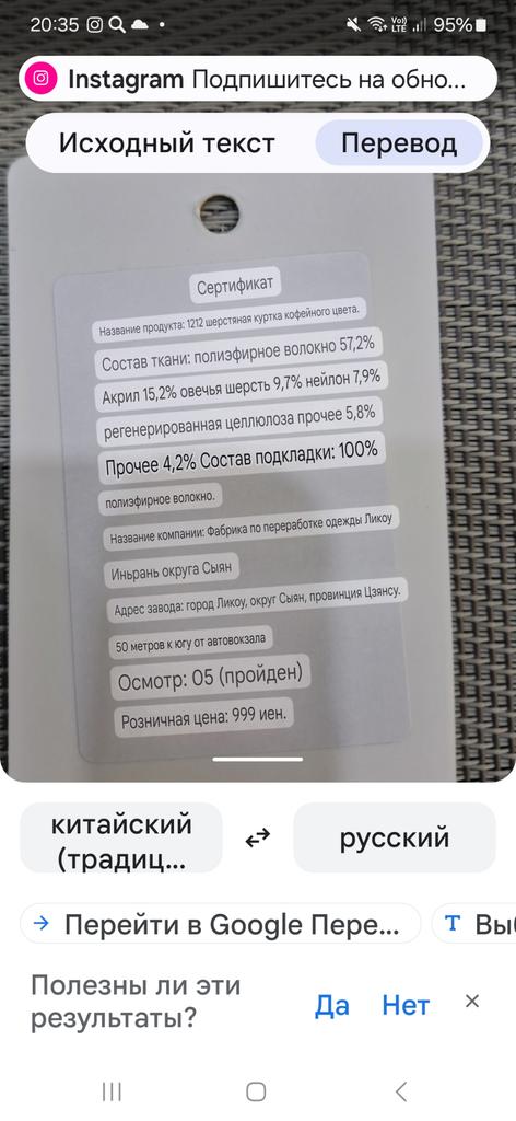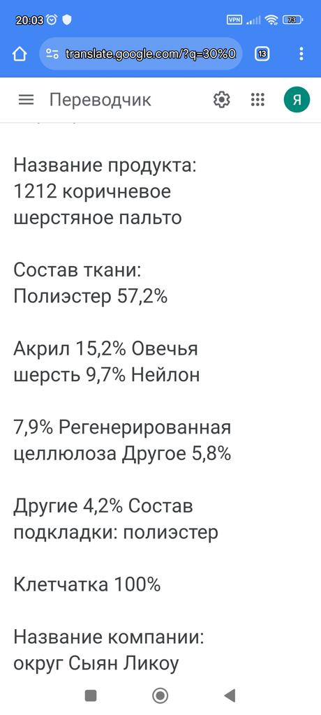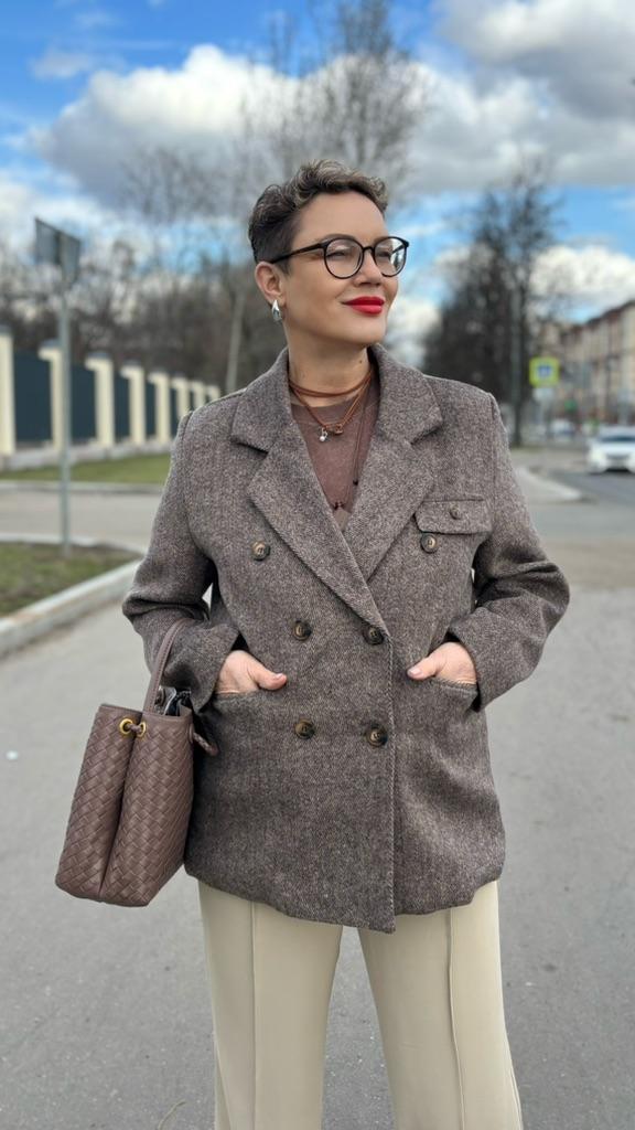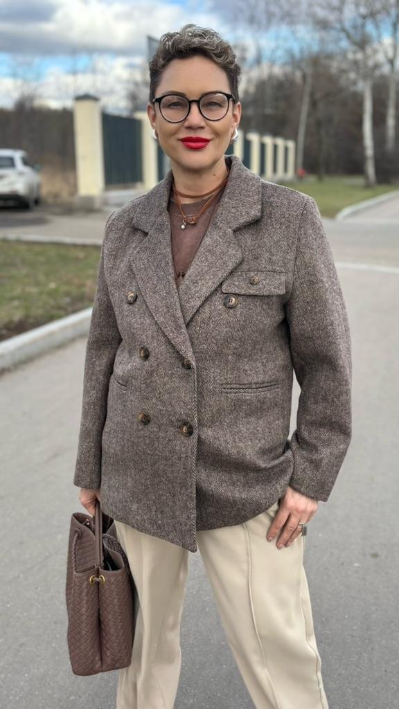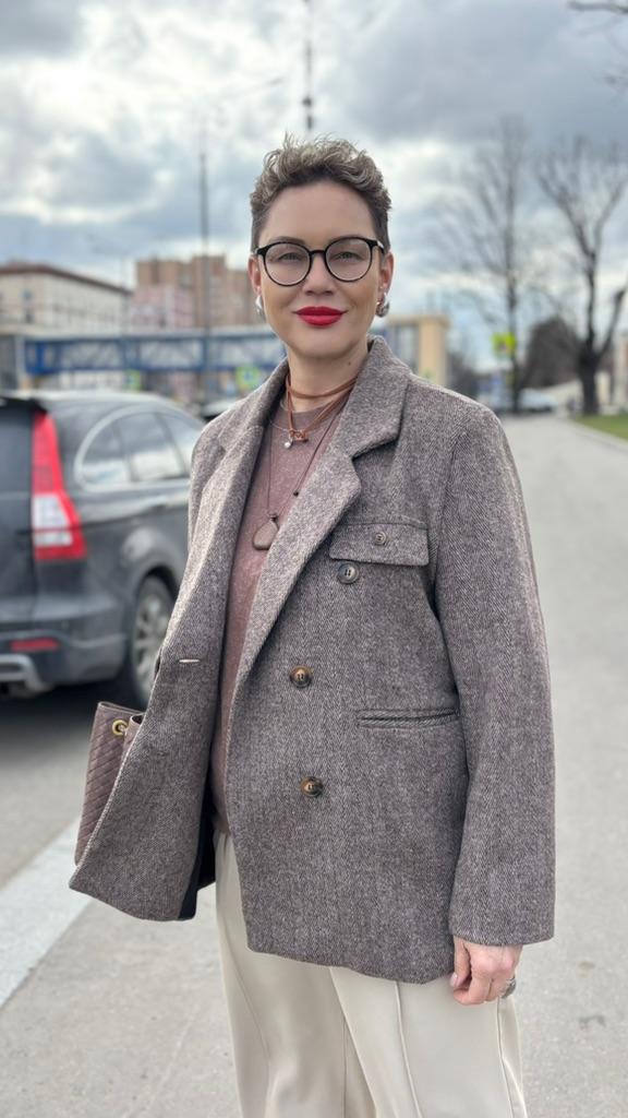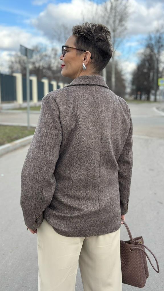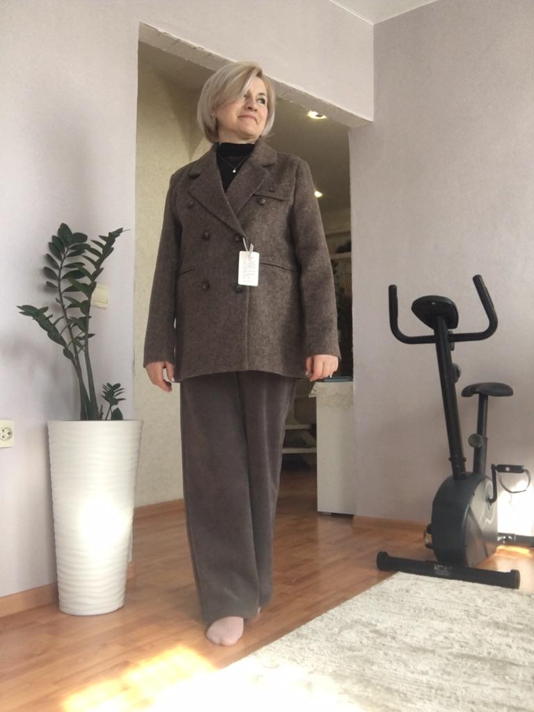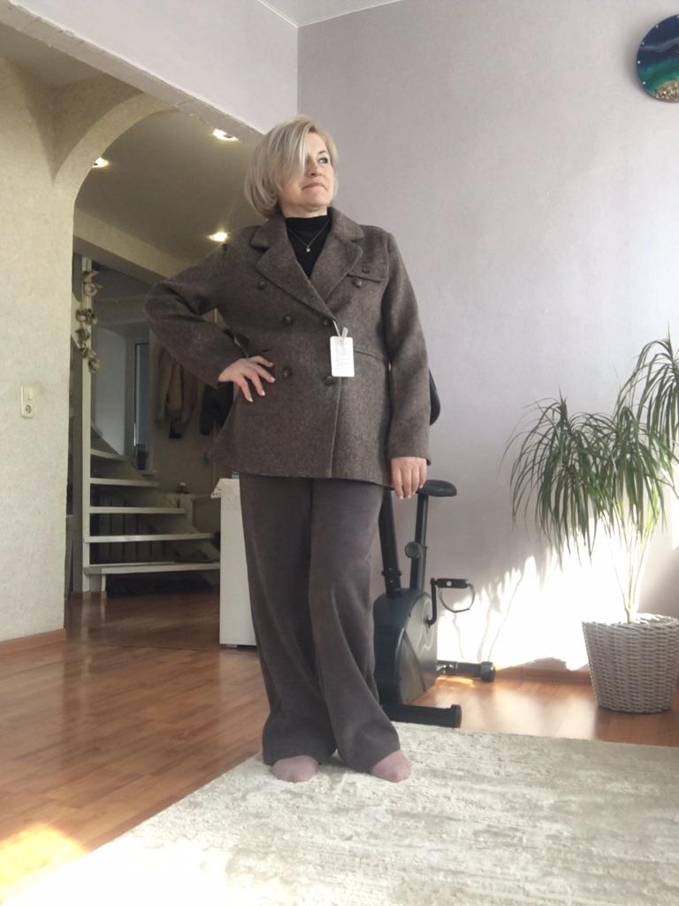 I liked the jacket, the right patterns, although they sent me a 4cm smaller OG, it sat well on my 98cm OG. The fabric is like cloth, but soft, keeps its shape, it came not wrinkled, I didn't even steam it. There is no tag about the composition of the fabric, but bloggers have it, I contacted the SP - they returned 20%, thank them for that. For me, it is very important what the composition of the fabric is and how to care for it. Spring is coming soon, I will wear a jacket often with pleasure. Thank you for the product.
