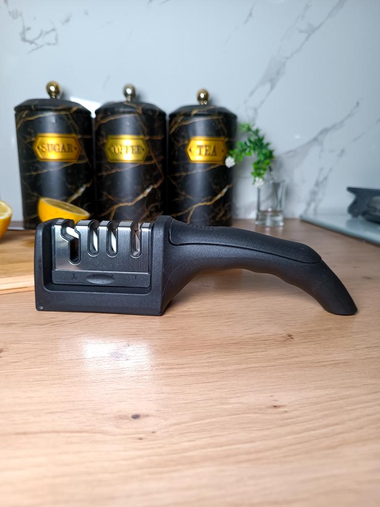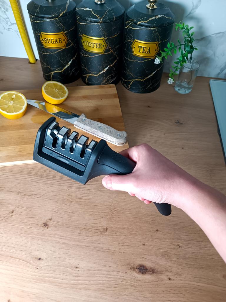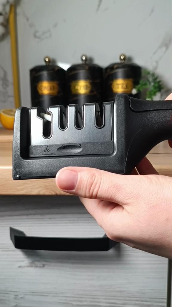 Sharpener for knives and kitchen scissors from TIHUAT Kitchenware! Suitable for all types of knives. ✈️ The parcel took less than a month to Moldova. ✅Material: plastic body, metal . ✅ 3 reps. for sharpening knives and 1 hole. for sharpening scissors ✅Comfortable handle and silicone bottom to prevent the sharpener from slipping. ✅Excellent quality! ✅I’m happy with the purchase and definitely recommend it for purchase ❤️
