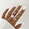New Green Crystal Heart Kunckle Rings Set For Women Enamel Yin Yang Geometric Finger Ring Girls Fashion Jewelry