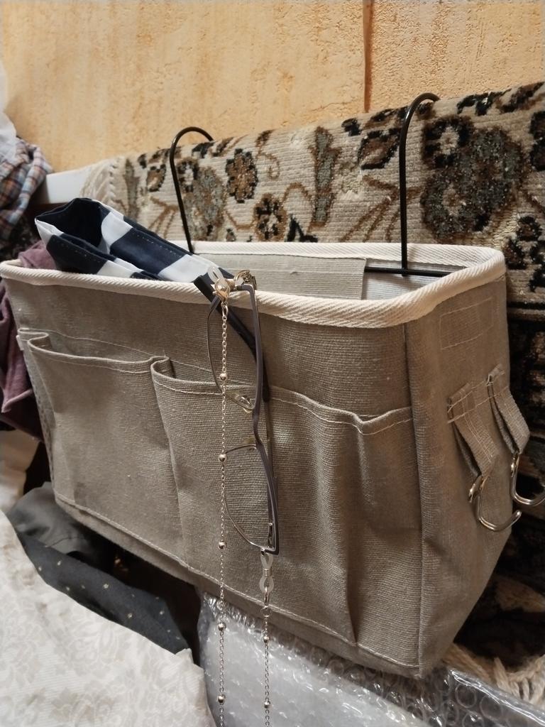 Positive: The shipment was combined into one and the packaging size was reduced to a minimum by removing air. The bag does not look as valuable as in the pictures. Looks totally cheap on the bed. Now try to hang it somewhere else, but can't find anything where the bag can be has a stable hold. For me it is a superfluous utensil. A waste of money. The second star is for the seamstress who sewed the bag properly.