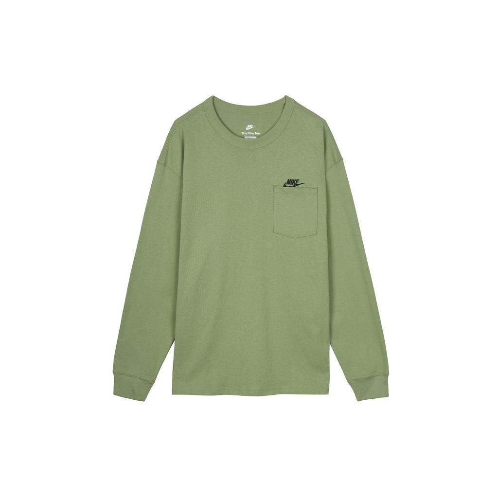 Nike Chest Pocket Logo Print Round Neck Long Sleeve T-Shirt Men Tops Green DR7930-334