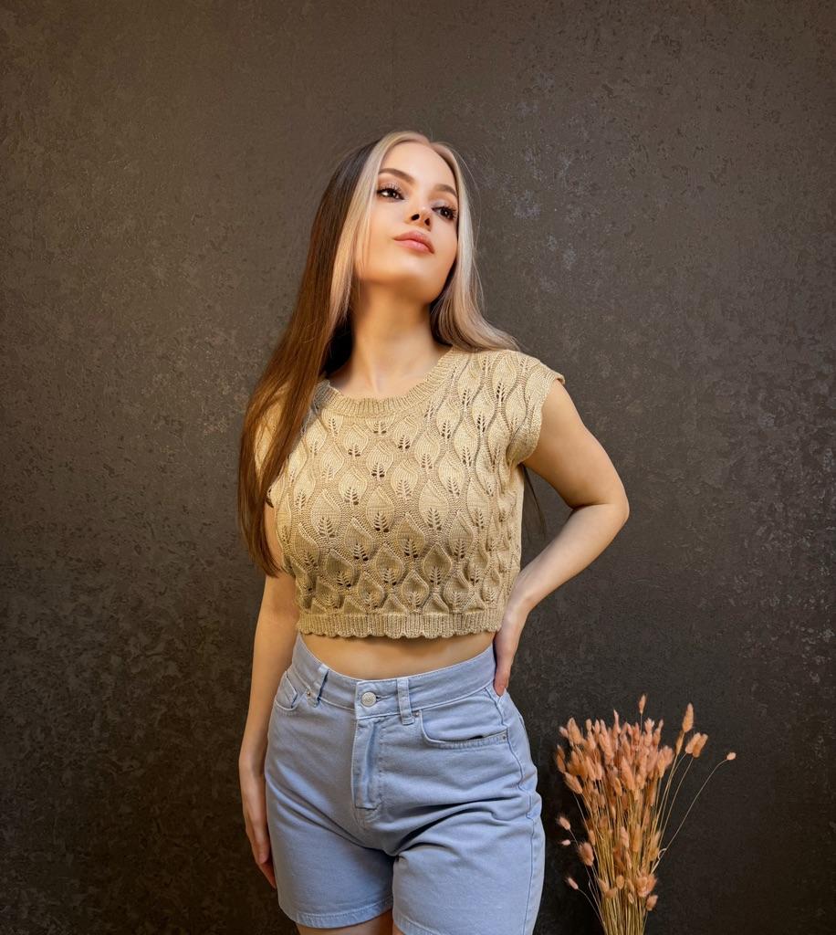 * Crop top with perforated lace * ๐ฅ๐๐ถ๐ฒ๐ณ๐ฒ๐ฟ๐๐ฒ๐ถ๐ 20 days ๐ฅ๐๐ถ๐ฒ๐ณ๐ฒ๐ฟ๐๐บ๐ณ๐ฎ๐ป๐ด The delivery includes 1 top in the corresponding color and size. The top is available in 4 different colors (white, green, khaki, pink) in sizes S to XL. I ordered it in size S in white. I wear size 36 to 38. I weigh 62 kg over 172 cm. Cup size 75D. Unfortunately it is still a little too big for me. ๐ฅ๐ค๐๐ฎ๐น๐ถ๐รค๐ The top is not completely opaque, which is what we wanted, thanks to the perforated lace. The top is very stretchy. The front has a different hole pattern than the back. The top is cut rather wide and falls loosely. For material composition : 100% Viscose Feels super comfortable on the skin. ๐ ๐ฅ๐๐ฎ๐๐ถ๐ Cute summer top with subtle lace. I recommend wearing a skin-colored bra underneath. ....but disadvantage is that it is slightly transparent (see photos and video).. It's better to order it one or two sizes smaller.