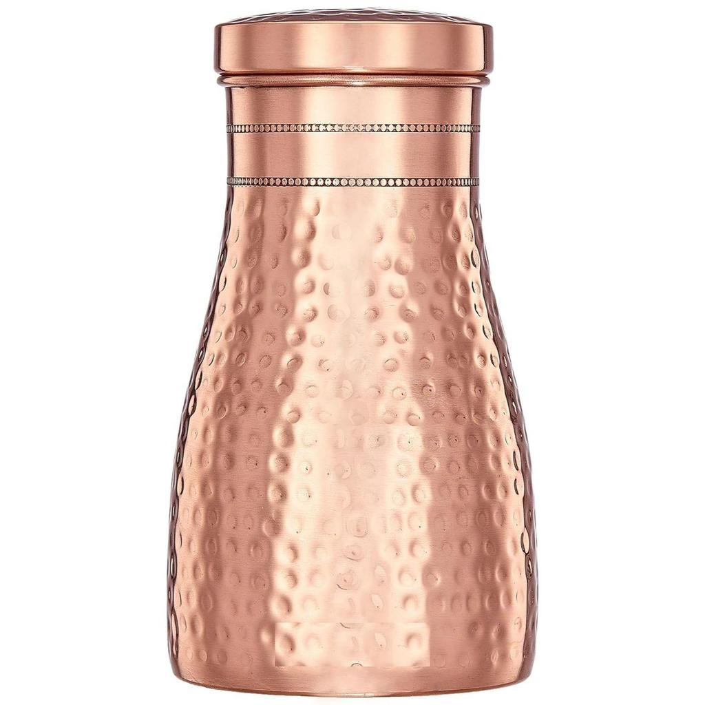 Copper Water Bottle Bedside Bottle with Glass Hammered Finish 1000 Ml