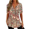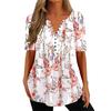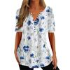 Flower print, buttons, V neck and A-line loose hem make this T-shirt so fashionable and trendy and you can show your female charm in this.