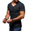 Men V-Neck Casual T-shirt Solid Color Slim Fit Gym Sports Fashion Zipper Design Short Sleeve T-shirts Soft Comfortable Tops