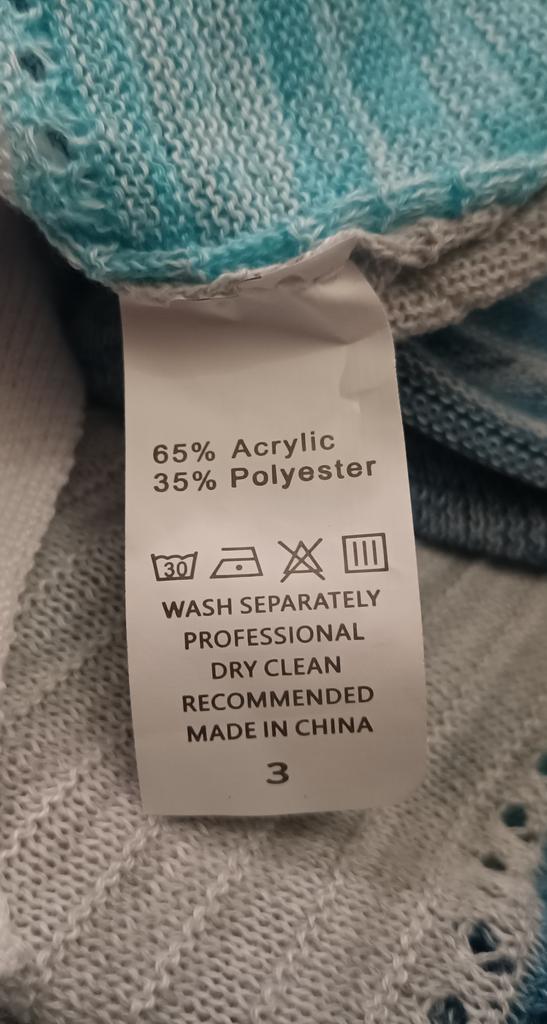 Line dry in the shade, Do not bleach, Dry clean, Hand wash in cold water, Iron at temperatures below 150°C
