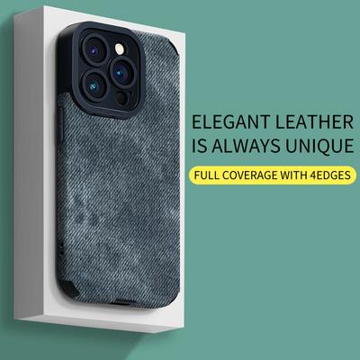 Jean Denim Fabric Printed Vertical Grain Leather Soft Silicone Case Back Cover with Camera Lens Full Protection for OPPO VIVO Xiaomi Redmi Huawei