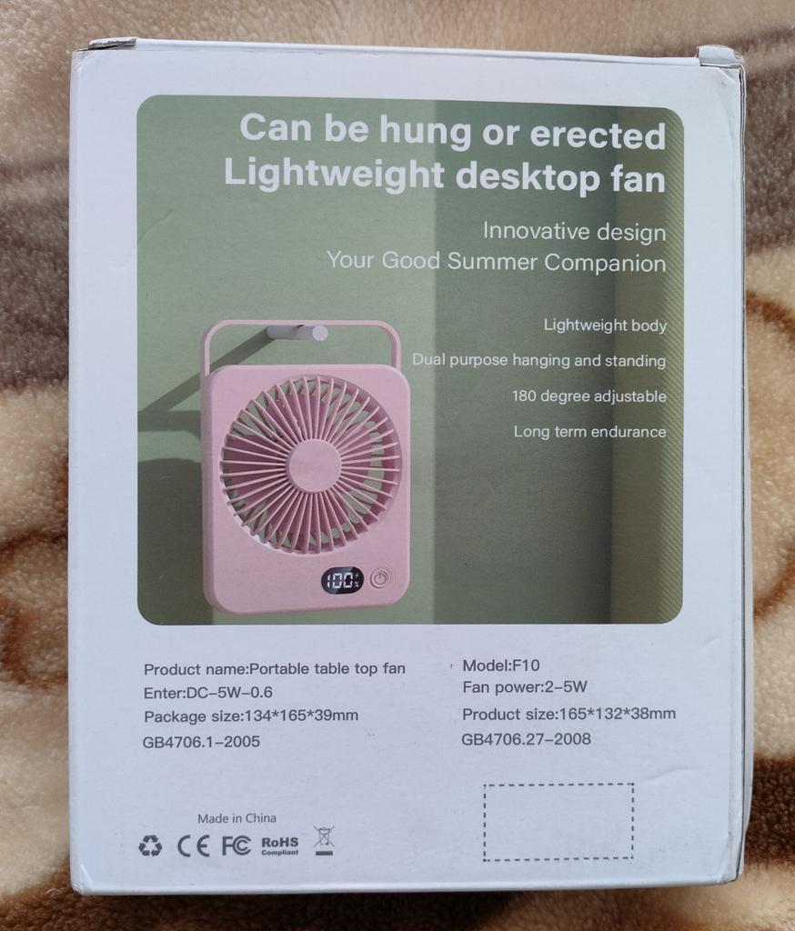 This lightweight desktop fan can be hung or stood up, offering versatility in usage. Weighing only 232g, it is easy to carry around. The built-in 1200 mAh lithium battery with a digital power display ensures long-lasting battery life.