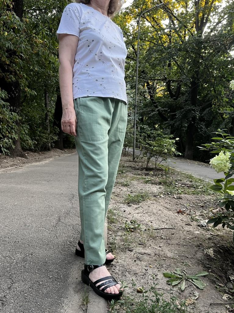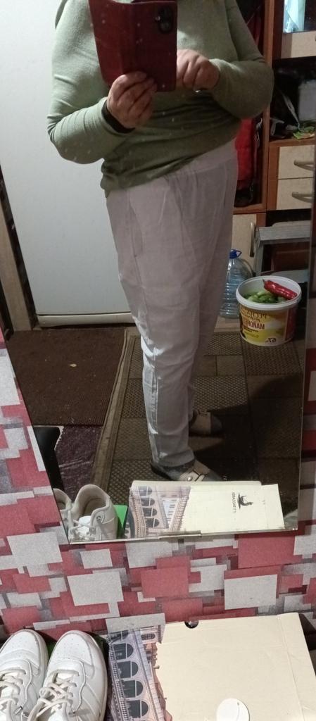 Very thin fabric, but such trousers are also needed for summer. I didn't like the color very much. It looks more interesting in the picture. The size is right.