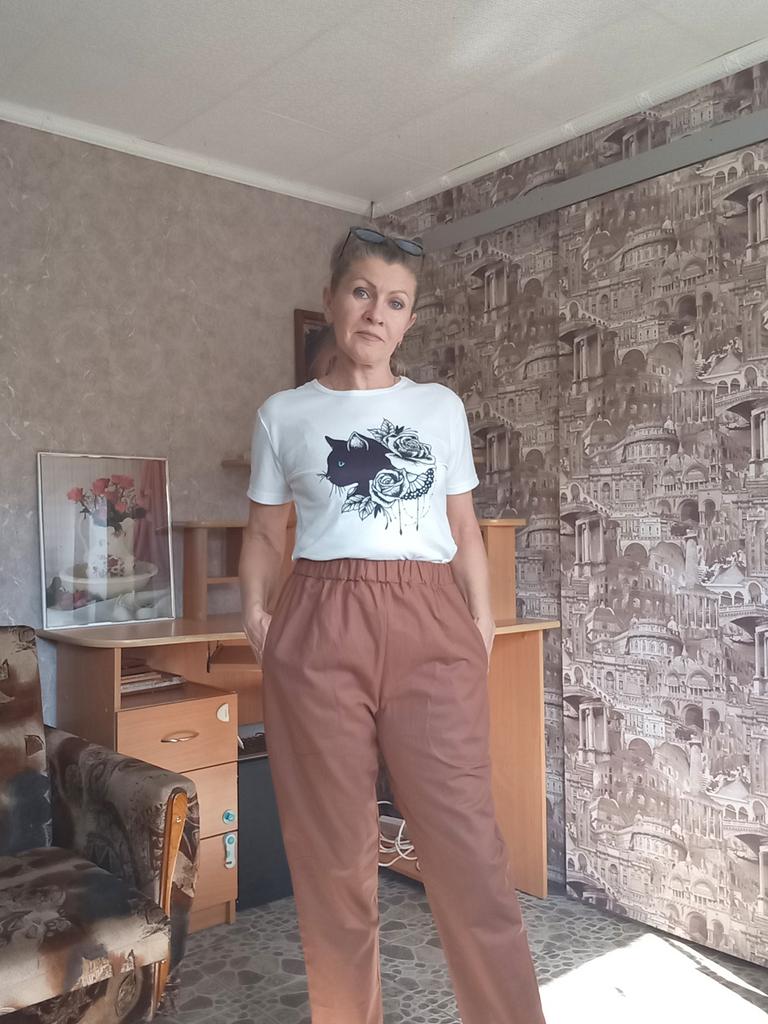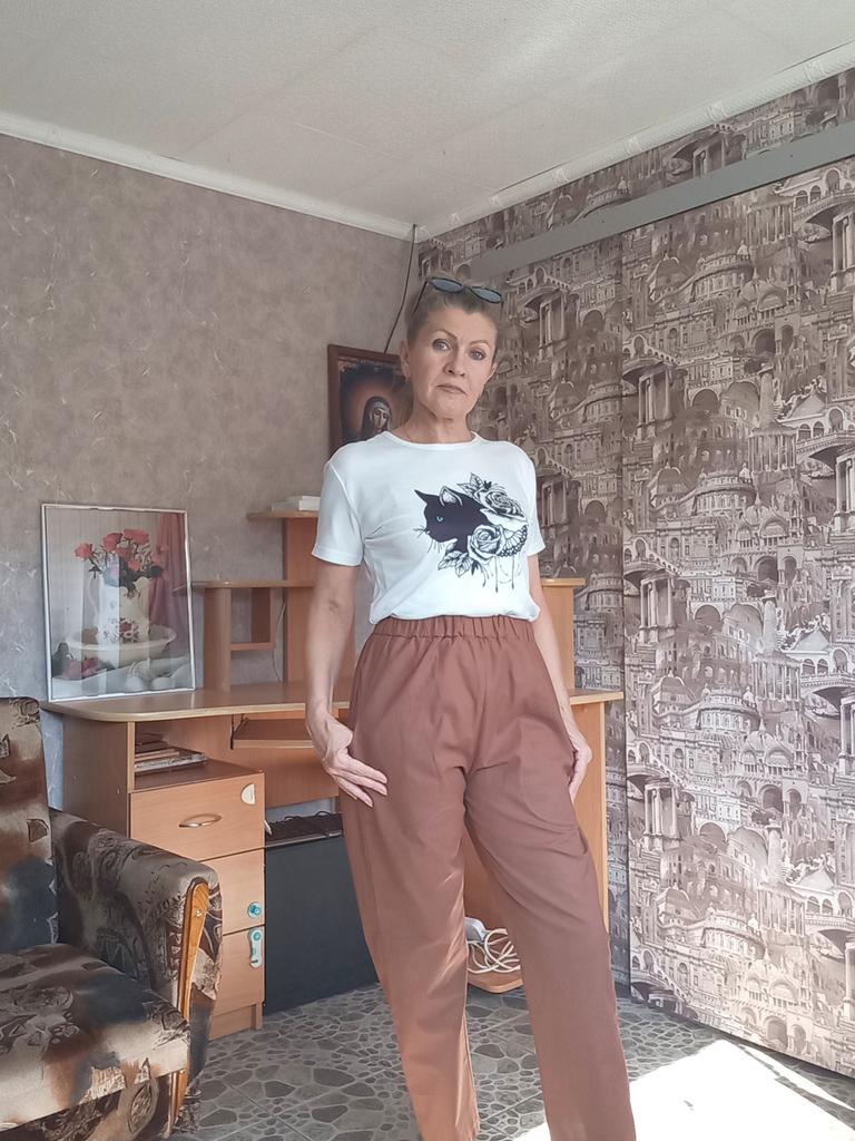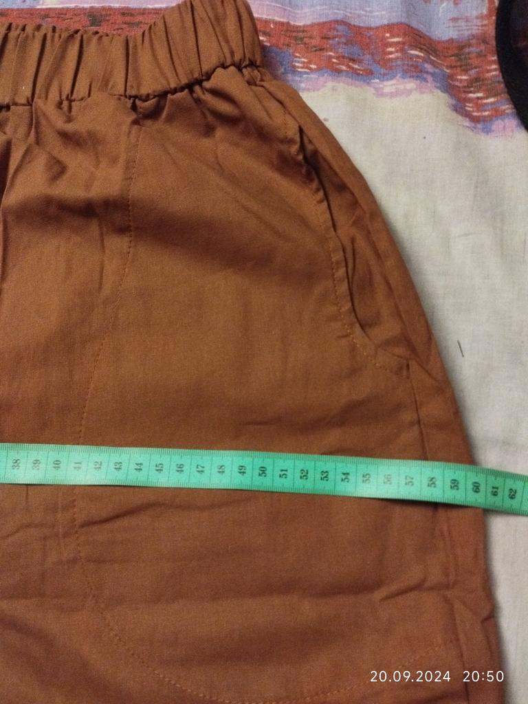 Summer trousers with pockets, dark brown color π€ very beautiful. 4XL on 106, 118 loose. I like it.