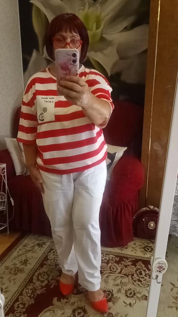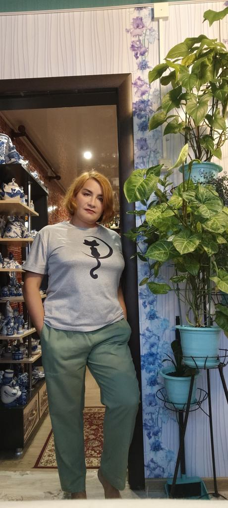 Thank you. Fast delivery. Pants made of thin cotton fabric, underwear is visible. Tight cut. For a loose fit, you need to take a size larger.