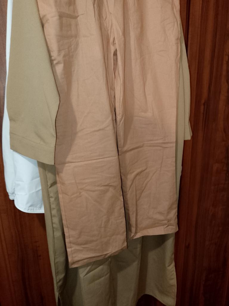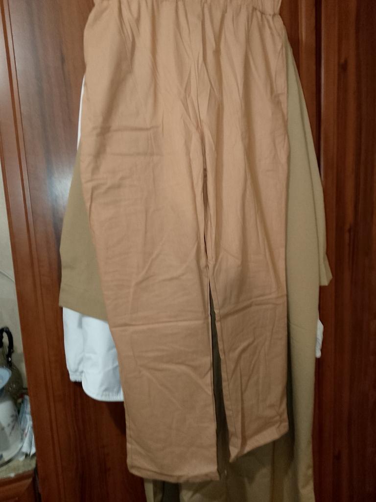 Trousers, cotton is good, but they are see-through, somehow they didn't lie close to linen, they look like hospital ones, you need a nice shirt like a bat, the same thin one, so that it would be nice and beautiful. It will do for the summer. By the way, there were no presents.